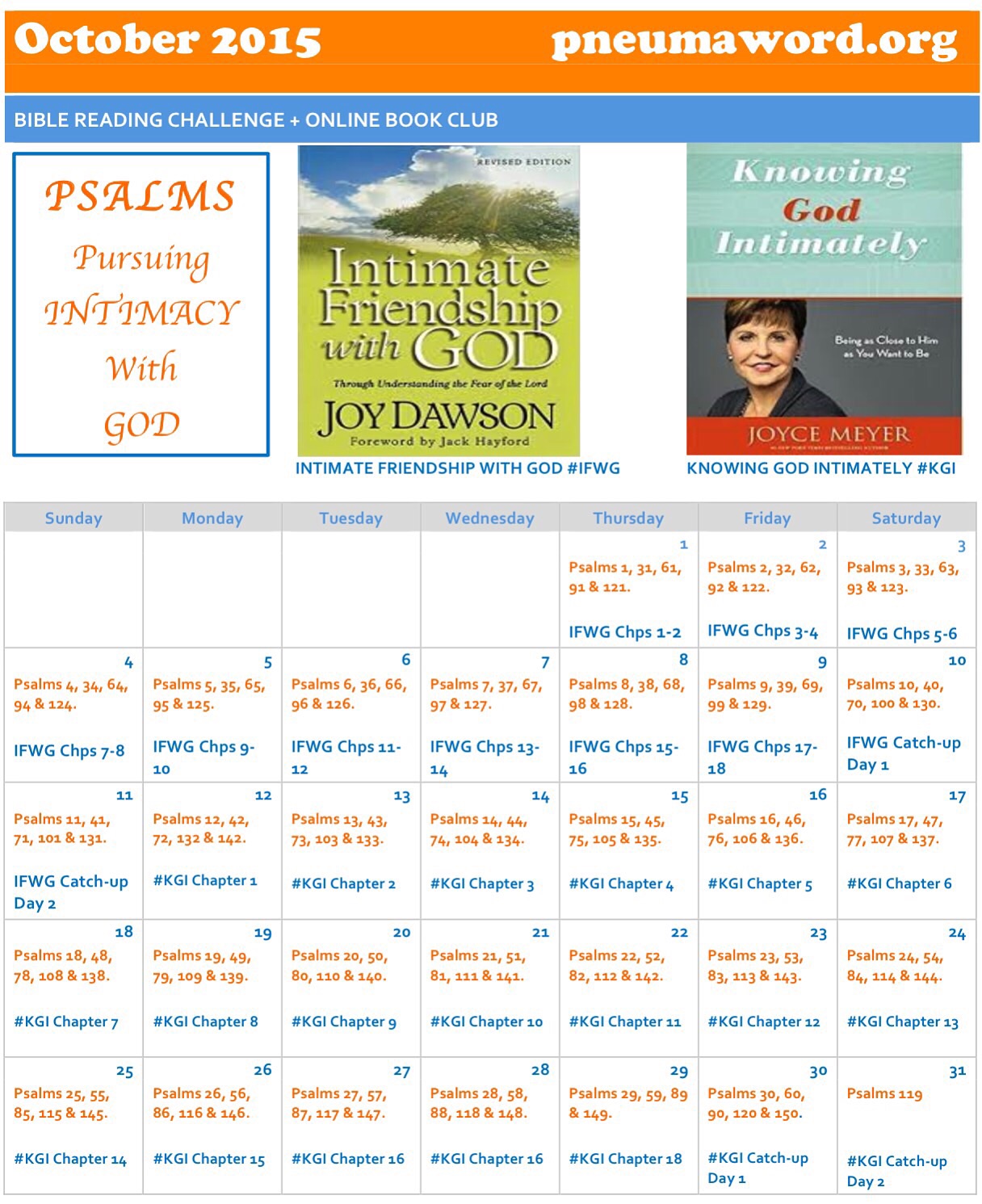 PneumaWord aims this October (2015) by God’s grace, to clear every doubt in your mind about the possibility of developing friendship/cultivating intimacy with God, via its combo of a Bible study challenge – studying Psalms and Online Book Club – books written by women of God around the subject area. This by no means aims to be an exhaustive list of EVERY ingredient needed for such, but more of an introduction that sets you on a fulfilling journey for life, of being intimate friends with the Most High God, Creator of the Universe, the God Who was, Who is and Who is to Come, Who fills time and Eternity and is Incomprehensible…think about that! 😀