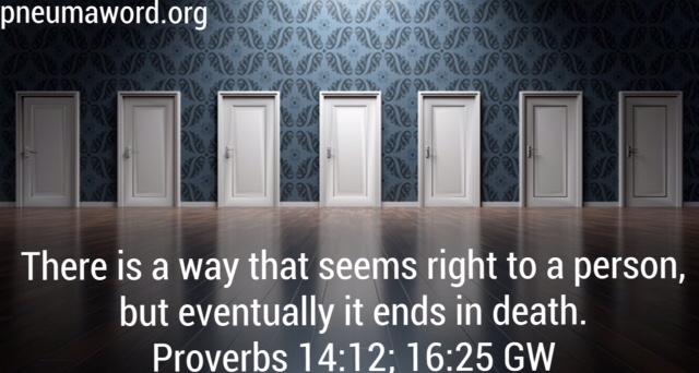 “There is a way that seems right to a person, but eventually it ends in death.” Proverbs 14:12; 16:25 GW.