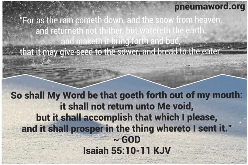 So shall my word be that goeth forth out of my mouth: it shall not return unto me void, but it shall accomplish that which I please, and it shall prosper in the thing whereto I sent it.