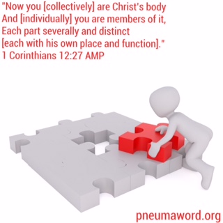 “Now you [collectively] are Christ’s body and [individually] you are members of it, each part severally and distinct [each with his own place and function].“
